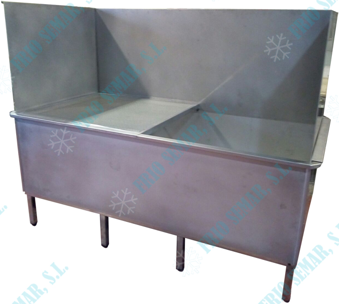 Podeís ver más fotos de las barras pescaderas aquí. En este enlace teneís las barandas. También os enlazamos los tajos de corte acoplados a la mesa pescadera y el lavamanos.