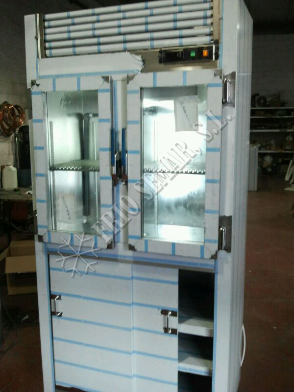 Hoy os mostramos un armario expositor con dos puertas de climalit, en su parte inferior tiene dos puertas correderas con dos entrepaños o estantes, fabricado totalmente en acero inoxidable. Recordarles que somos fabricantes, y nos adaptamos a cualquier medida ¡No dude en pedir presupuesto sin compromiso!